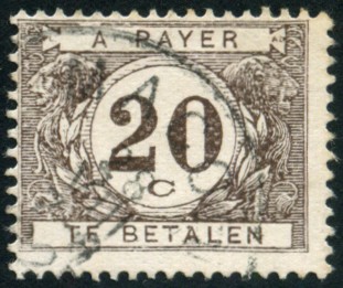 20c., brun-noir Y&T N°TA34a Emis en 1922 |