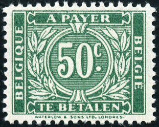 50c., vert-bleu Y&T N°TA53 Emis en 1945 Légende BELGIQUE-BELGIE |