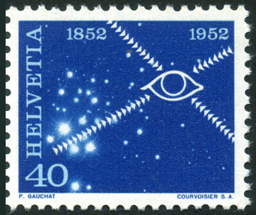 40c., bleu Y&T N°520 COB N°312 Emis en 1952 Centenaire du Service des télécommunications Papier avec fragments de fils de soie Dentelé 11½ |