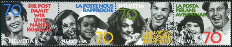 4*70c., polychrome Y&T N°1551-54 COB N°929-932 Emis en 1997 Timbres n° 1551 à 1554 se tenant horizontalement pour former une seule image Dentelé 13½ |