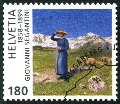 180c., polychrome Y&T N°1626 COB N°982 Emis en 1999 Centenaire de la mort de Giovanni Segantini Dentelé 13½ |