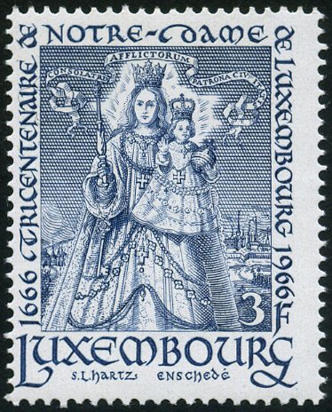 3f., bleu foncé Y&T N°682 Emis en 1966 Tricentenaire de Notre-Dame de Luxembourg |