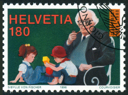 180c., polychrome Y&T N°1503 COB N°892 Emis en 1996 Centenaire de Jean Piaget Dentelé 11½ |
