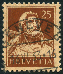 25c., brun sur chamois Y&T N°204 COB N°175 Emis en 1925 Papier avec fragments de fils de soie Filigrane croix Dentelé 11½ |
