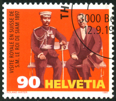 90c., polychrome Y&T N°1546 COB N°926 Emis en 1997 Centenaire de la visite de Sa Majesté le Roi de Siam Dentelé 13½ |