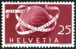 25c., brun carminé sur saumon Y&T N°475 COB N°295 Emis en 1949 75e anniversaire de l'U.P.U Papier avec fragments de fils de soie Dentelé 11½ |