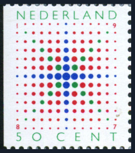 50c., vert, rouge et bleu Y&T N°1305 Emis en 1987 Etoile à 8 branches stylisées avec texte vert et fond rouge |