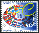 90c., polychrome Y&T N°1616 COB N°975 Emis en 1999 50e anniversaire du Conseil de l'Europe Dentelé 13½ |