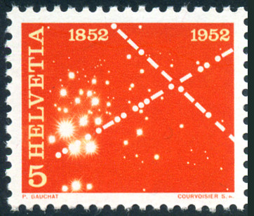 5c., rouge-orange et jaune Y&T N°517 COB N°309 Emis en 1952 Centenaire du Service des télécommunications Papier avec fragments de fils de soie Dentelé 11½ |