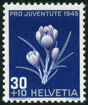 30c. + 10c., bleu et rose Y&T N°426 COB N°J116 Emis en 1945 Timbres pour la jeunesse Papier avec fragments de fils de soie Dentelé 11½ |