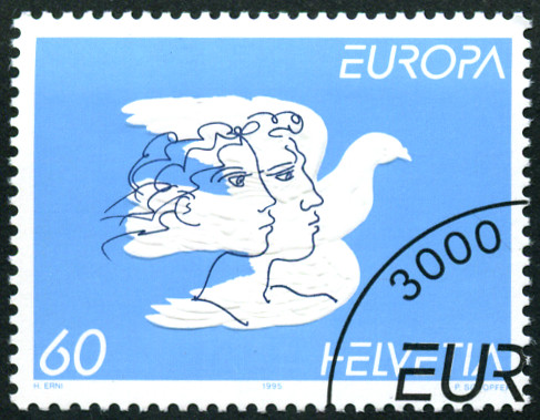 60c., bleu clair et violet Y&T N°1480 COB N°880 Emis en 1995 Paix et liberté Impression partiellement en relief Dentelé 13½ |