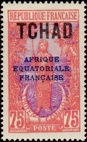 75c., rouge et violet Y&T N°33 Emis en 1924 T.-Poste de 1922 surchargé "A.E.F." |