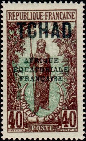40c., brun foncé et vert Y&T N°29 Emis en 1924 T.-Poste de 1922 surchargé "A.E.F." |
