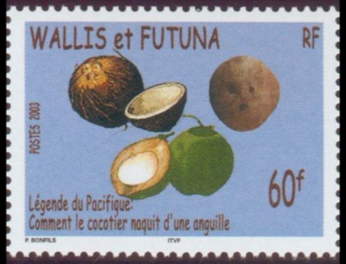 60f., multicolore Y&T N°607 Emis en 2003 Légende du Pacifique. "Comment le cocotier naquit d'une anguille" |