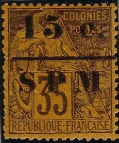 15c., sur 35c. violet-noir sur jaune-orange Y&T N°13 Emis en 1885 T.-Poste des Colonies de 1881 surchargé |