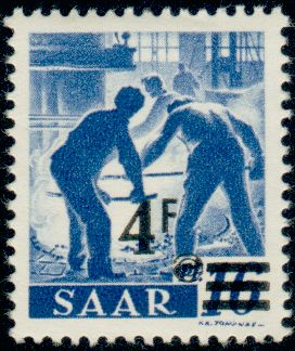 4f. sur 16p., outremer Y&T N°221 Emis en 1947 Série précédente avec valeur en francs en surcharge |