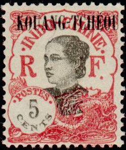 5c., rose et noir Y&T N°60 Emis en 1923 T.-Poste d'Indochine de 1922-23 surchargé, femmes d'Indochine |
