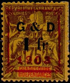 1f., sur 75c. violet sur jaune Y&T N°53h Emis en 1904 T.-Poste de 1903 avec surcharge G & D surchargé |