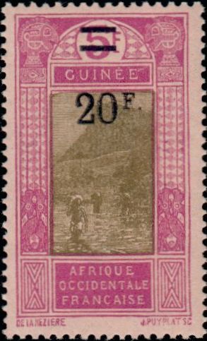 20f., sur 5f. lilas-rose et gris-olive sur rose Y&T N°106 Emis en 1924 Type de 1913-17 avec nouvelle valeur en surcharge |
