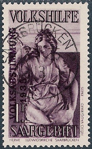 1f.+50c., violet-brun Y&T N°191 Emis en 1934 Timbre de 1925-34 surchargé "VOLKSABSTIMMUNG 1935" |