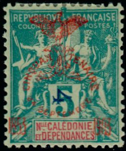 4c., sur 5c. vert (4 -type III) Y&T N°83b Emis en 1903 Cinquantenaire de la présence française. T.-P de 1892-1900 surchargé |