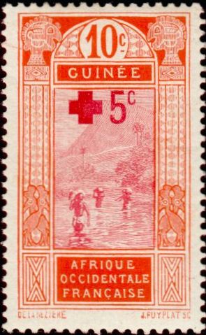 +5c., sur 10c. rouge-orange et carmin Y&T N°80 Emis en 1915 Au profit de la Croix-Rouge. T.-Poste de 1913-17 surchargé. |