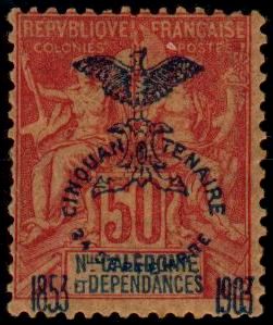 50c., rose Y&T N°78 Emis en 1903 Cinquantenaire de la présence française. T.-P de 1892-1900 surchargé |