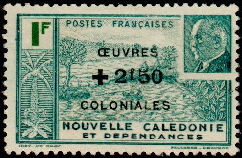 +2f.50, sur 1f. vert Y&T N°247 Emis en 1944 T.-Poste de 1941 surchargé "Oeuvres Coloniales" |