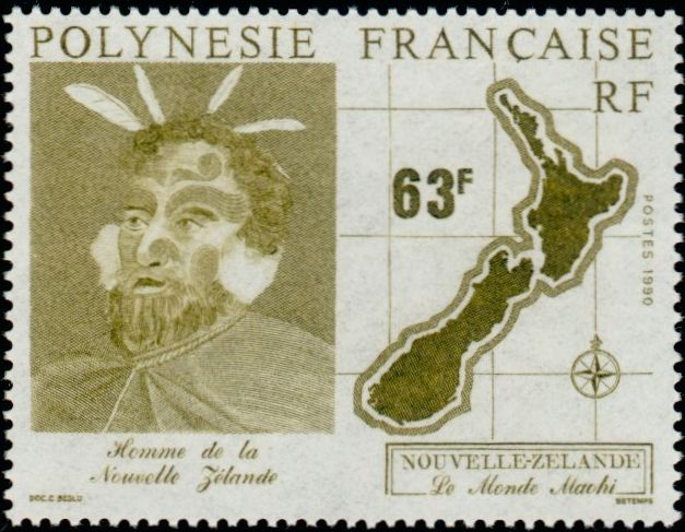 63f., olive et olive foncé Y&T N°356 Emis en 1990 Le monde Maohi |