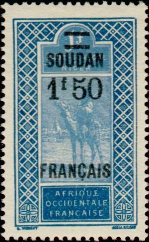 1f.50, sur 1f. bleu et outremer Y&T N°49 Emis en 1922 T.-Poste de 1921-26 surchargé |
