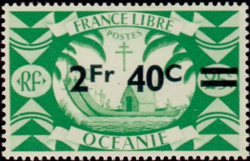 2f.40, sur 25c. vert-jaune Y&T N°176 Emis en 1945 T.-Poste de 1942 surchargé |