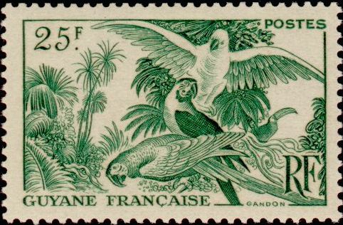 25f., vert-jaune Y&T N°216 Issued on 1947 Aspects de la Guyane |