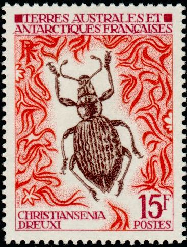 15f,, carmin, rouge et brun-rouge Y&T N°49 Emis en 1973 Insectes |