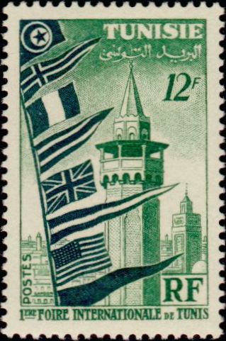 12f., vert-jaune et vert-noir Y&T N°361 Emis en 1953 1ère foire internationale de Tunis |
