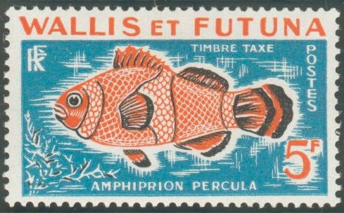 5f., bleu, orange et noir Y&T N°TA39 Emis en 1963 Timbre Taxe Poissons |