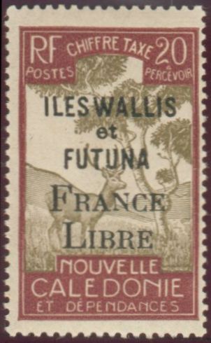 20c., brun carminé et gris-olive Y&T N°TA29 Emis en 1943 Timbre Taxe T.-Taxe de 1930 surchargé "France Libre" |