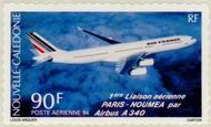 90f., multicolore Y&T N°PA311 Emis en 1994 1ère liaison Paris - Nouméa par Airbus A 340 |