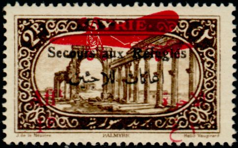 1pi., sur 2pi. sépia Y&T N°PA34 Emis en 1926 Poste Aérienne Au profit des réfugiés du Djebel Druze. T-P de 1925 surchargés |