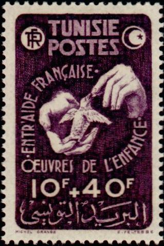 10f.+40f., violet Y&T N°323 Emis en 1947 |
