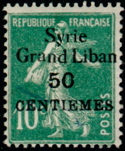 50c., sur 10c. vert Y&T N°90 Emis en 1923 T-P de France de 1900-21 surch. Syrie - Grand-Liban |