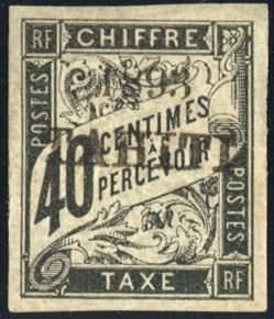 40c., noir Y&T N°TA23 Emis en 1893 Timbre Taxe T.-Taxe des Colonies de 1884 surchargé |