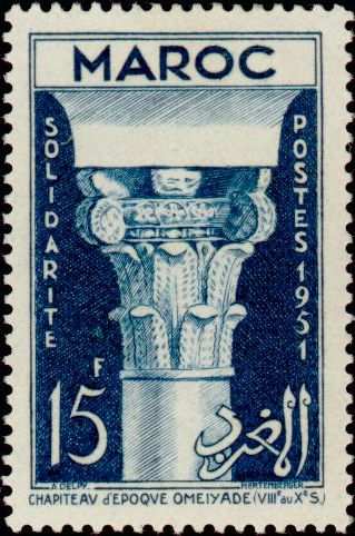 15f., bleu Y&T N°315 Emis en 1952 Campagne de solidarité franco-marocaine. Chapiteaux divers |