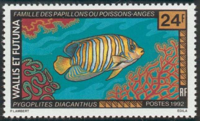 24f., multicolore Y&T N°440 emitida el 1992 Faune. Poissons-anges |