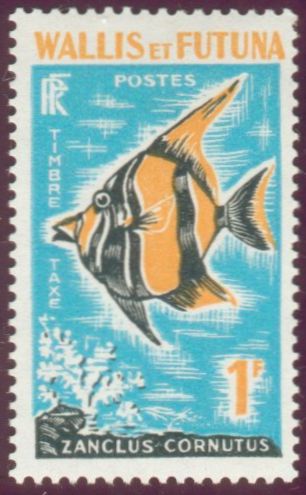 1f., bleu, jaune et noir Y&T N°TA37 Emis en 1963 Timbre Taxe Poissons |