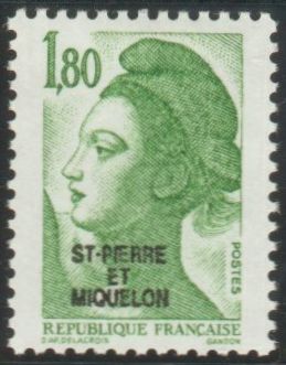 1f.80, vert Y&T N°462 emitida el 1986 T.-Poste de France |