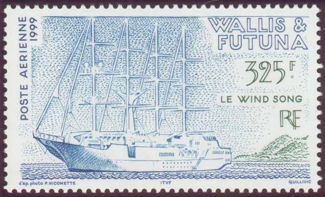 325f., bleu-vert, vert et bleu foncé Y&T N°PA218 Emis en 1999 Poste Aérienne Bateau. Le Wind Song |