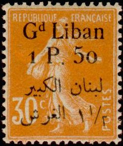1pi.50, sur 30c. orange Y&T N°29 Emis en 1924 T.-Poste de France de 1900-24 surchargé |