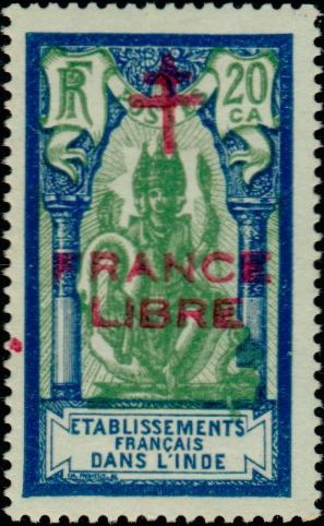 20ca., bleu et vert sur azuré Y&T N°182 Emis en 1941 T.-Poste de 1923-39 surchargé "France Libre" |