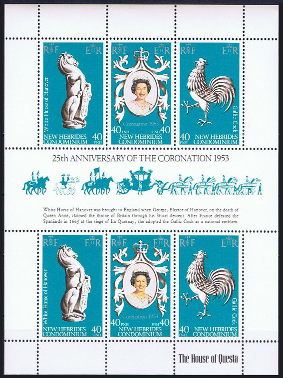 240mnh., polychrome et bleu-vert Y&T N°540A Emis en 1978 Le feuillet de deux triptyques Légende "New Hebrides" |