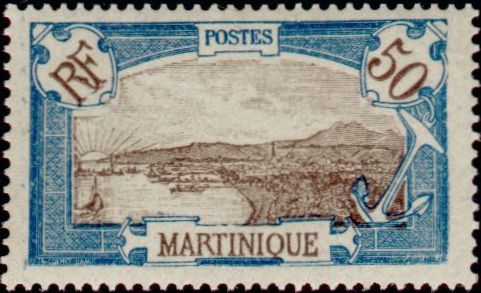 50c., bleu et brun Y&T N°100 Emis en 1922 Types de 1908-18 |